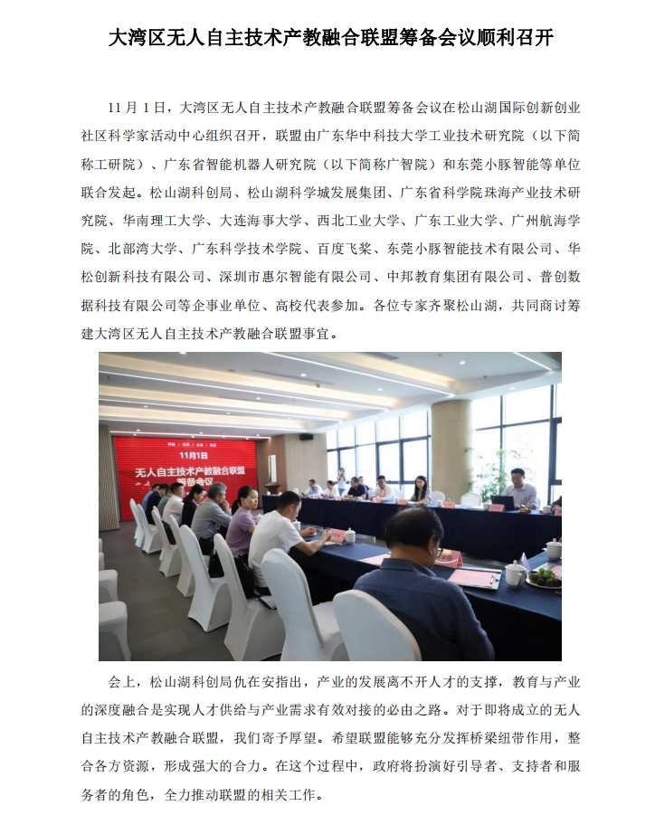 大灣區無人自主技術產教融合聯盟籌備會議順利召開